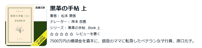 でも、黒革の手帳よりリアリティを感じられたし、行った事のない能登の冬景色が目の前に見えるようで。でも、黒革の手帳同様、誰にも感情移入できない(けど、面白い)