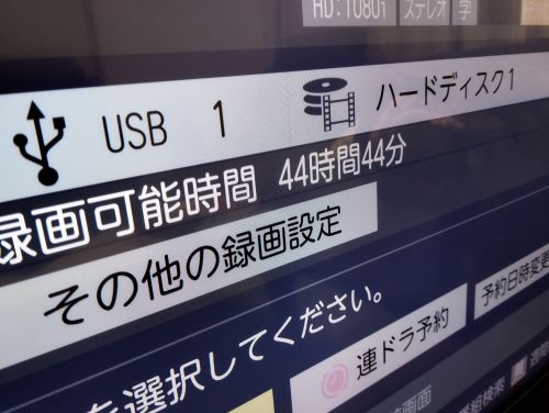 設定は簡単だったけど、500GBで44時間ちょいしか録画できないんだね、ワールドカップ全試合録画は厳しいなああ_| ̄|○
