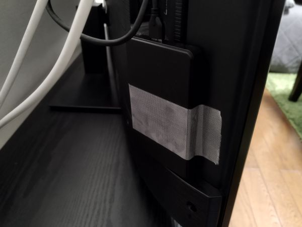 ※ケーブルが短かかったので、とりあえず養生テープでテレビの裏に貼りましたの図。
