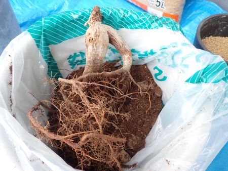 まず枝を根元からバッサリ切ってから、植替えしました。