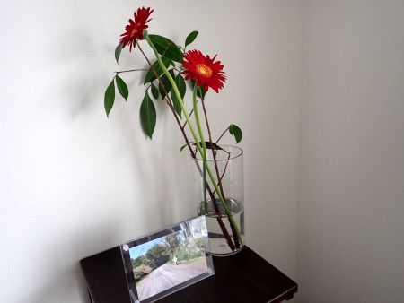 で、枝が何となくもったいなくて、先日オカンに買ったお花の花瓶に入れました。